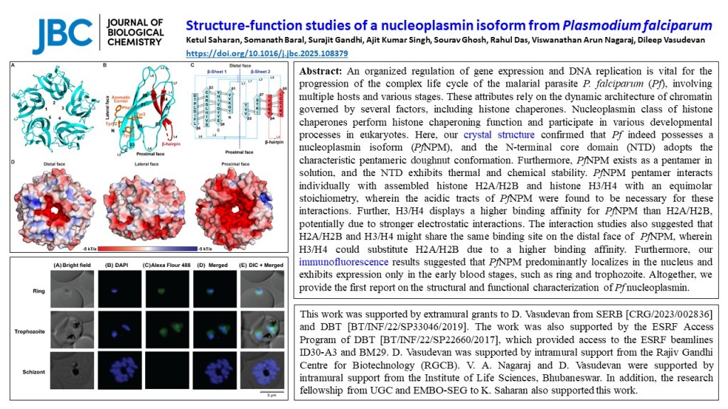 04/March/2025: Our work on Plasmodium falciparum nucleoplasmin gets published in JBC. Thus, finally, Ketul’s hard work paid off as a paper in JBC.