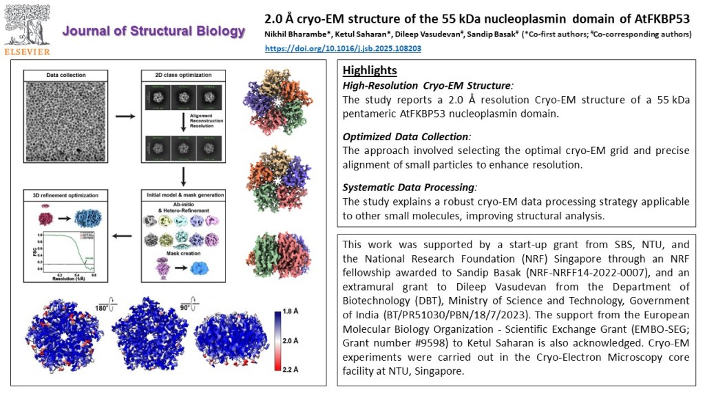 21/April/2025: Our first cryo-EM paper is out! The 2.0 A cryo-EM structure of a 55 kDa nucleoplasmin reported in this manuscript was completed with full support from Dr. Sandip Basak and Dr. Nikhil Bharambe from NTU, Singapore.