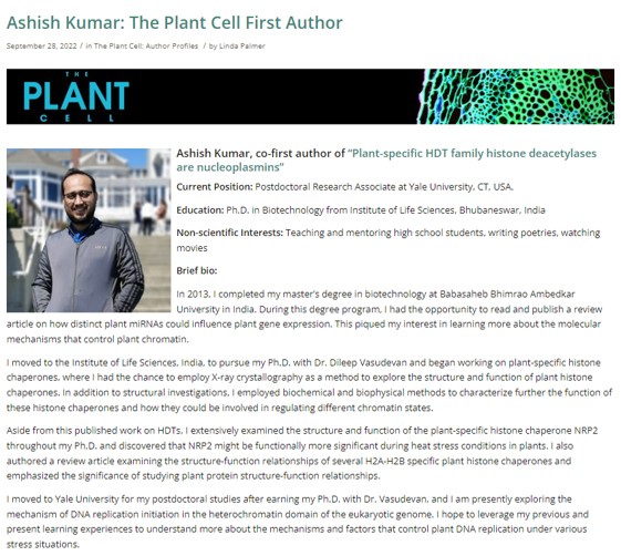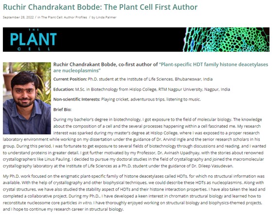 29/September/2022: Ashish & Ruchir got featured by Plant Cell! As the first authors of our manuscript in the Plant Cell, the journal has featured them. Congratulations both!