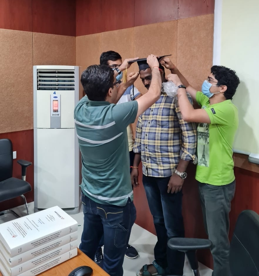 26/August/2021: Hurray! Rajiv defends his thesis! It was indeed a special day for our group. Mr. Rajivgandhi Sundaram turned Dr. Rajivgandhi Sundaram. Rajiv had Dr. Insaf Qureshi from the University of Hyderabad as his external examiner and his other thesis examiner was Dr. P. Sivaraman from NIMHANS. We had a little celebration after his online viva. –